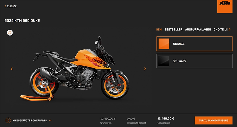 Based on UNREAL ENGINE and running on Google Cloud, KTM is using GORILLA RENDERING since 2024 for the 990 Duke configurator.
