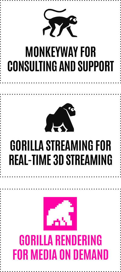 We overcome every limitation to provide on demand and streaming solutions with our GORILLA RENDERING and GORILLA STREAMING tools, added to our expertise to lead, deliver and support real-time 3D projects